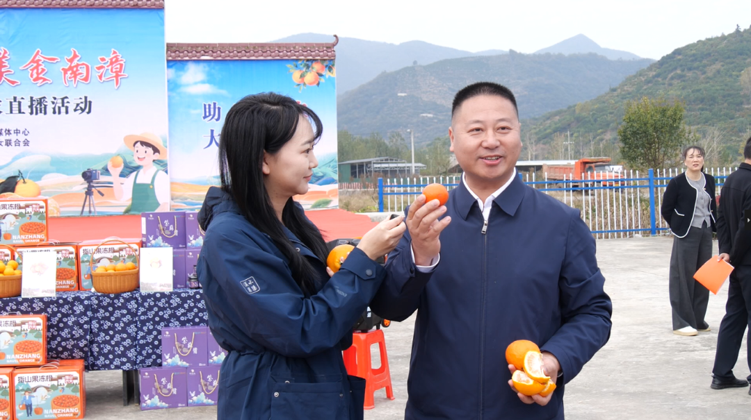 巡检镇党委书记祝佩强走进直播间推介南漳柑橘 杨澳 摄